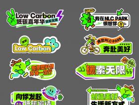 绿色环保低碳出行活动拱门手举牌贴纸物料ai矢量插画模板设计素材