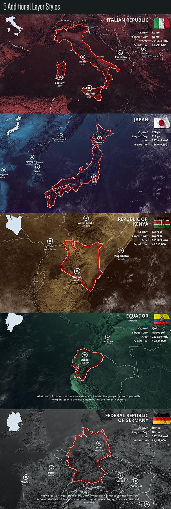 地图AE视频工具包(含202个国家国旗和美国51个州动态效果)MAP KIT