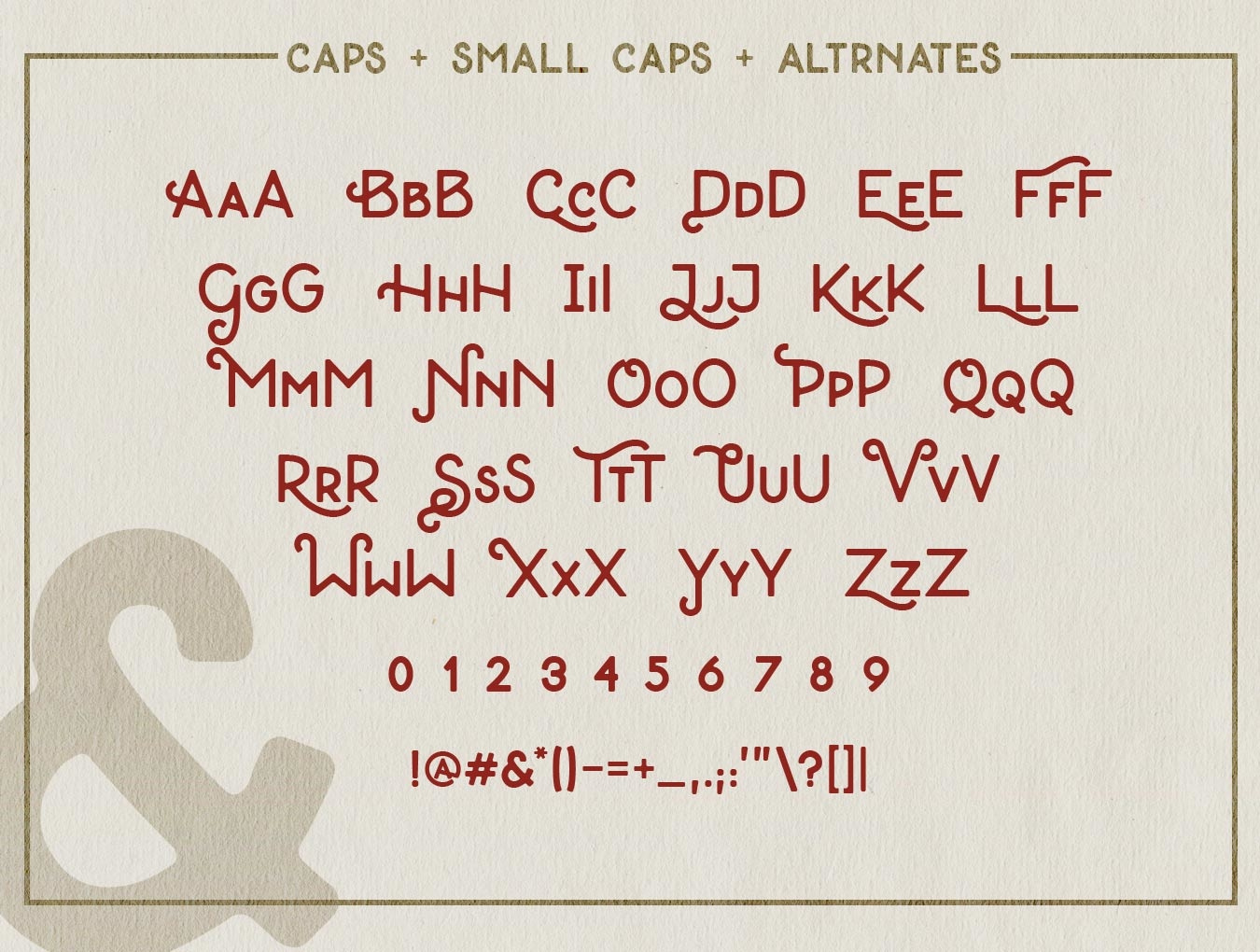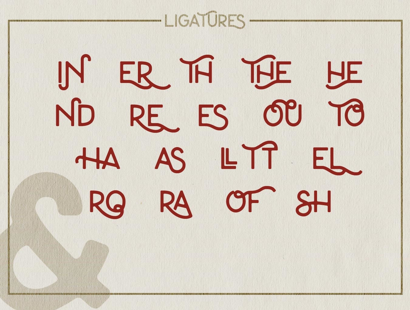 每个字母还有3种变体:小帽,正常帽和替代正常帽。此外,还有19个连字。