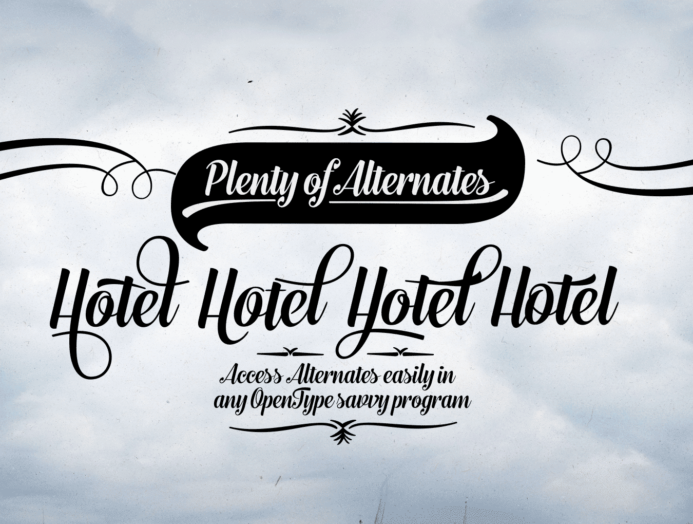 Journey是一款流畅优雅的复古脚本系列,由四个重量和一套配套装饰组成。 Journey充满了Alternate角色,让您轻松创建具有定制感的标题,徽标和海报。 Journey至少有三个替代每个基本字母:要激活替代品,请在任何OpenType Savvy程序中单击Swash,Stylistic或Titling Alternates,或者从Glyph Palette中手动选择更多替代字符。