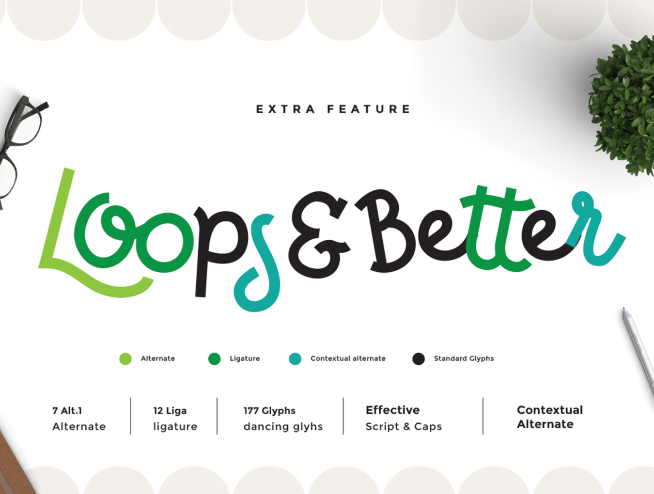 品红拿铁是Sans&Script字体之间的半组合。这个非常有趣的概念非常微妙,对于简单的品牌推广,简单的引语,标识,食品促销标题,食品标识,菜单,海报,邀请卡或卡通电影片名都很完美。品红拿铁来与简单的功能来完成简单的类型/标志。 Opentype功能:Ligature - 上下文替代 - Alternate - Ss01 - Script&Caps