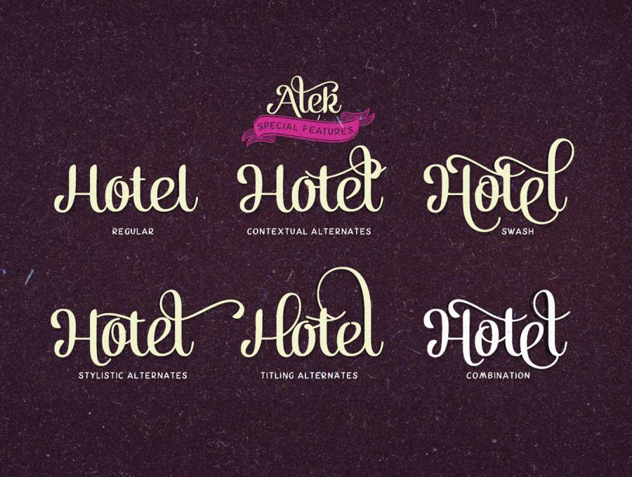 一个优雅而优雅而又俏皮的直立式脚本系列,由两个重量和装饰组成。 Alek配备了大量OpenType功能:要激活替换项,请在任何OpenType精明程序中单击Swash,Contextual,Stylistic或Titling Alternates或Discretionary Ligatures,Tabular或OldStyle Lining,或手动选择Glyph Palette中的字符。始终保持标准连字以获得最佳结果。搜索结果