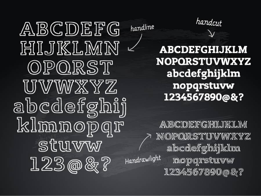 Lev Serif的臀部和大胆的手绘变化,具有三种不同的线宽;手绘,手绘和手绘。