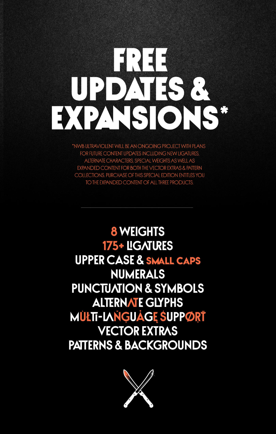 Ultraviolent Regular Free字体是Nowheresburg的8重量几何无衬线字体字体之一。这是灵感来自发条橙的海报类型。此外,它的设计结合了Futura的美学与Avant Garde的复杂结扎结构以及Herb Lubalin的其他类型设计。因此,今天我们有一个干净,现代的旋转创造一个quirkly复古,但时尚的外观。