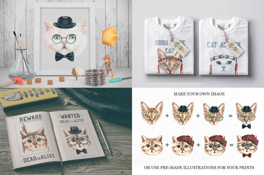 免费的猫的角色水彩素材 Free Cat Characters