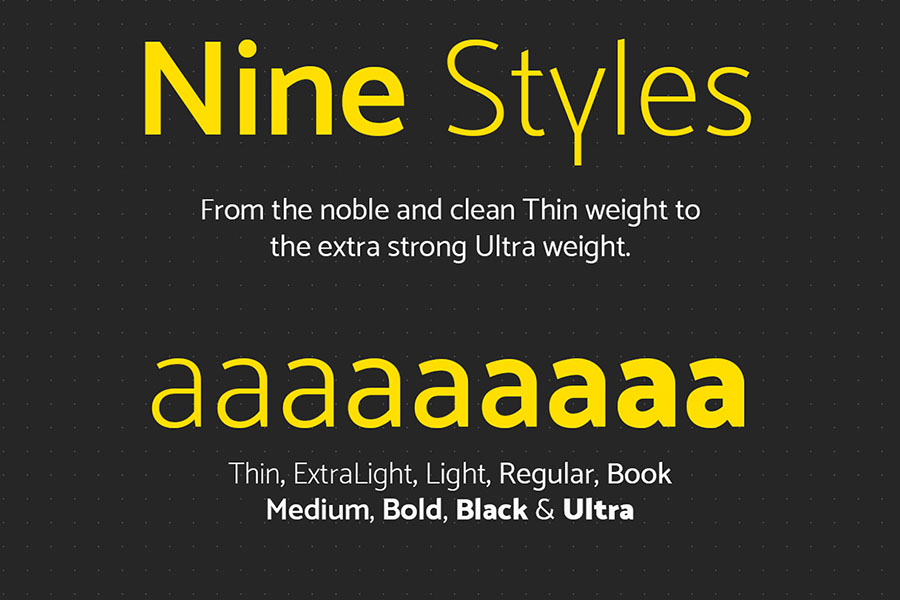 莫斯克是一个高贵,清洁,线性的 sans serif ,可以为您的设计带来现代,锐利和时尚的风格。这个字体家族非常适合标题,标识和更多的创意作品。因为它提供了各种字体的重量,所以它也看起来不错。