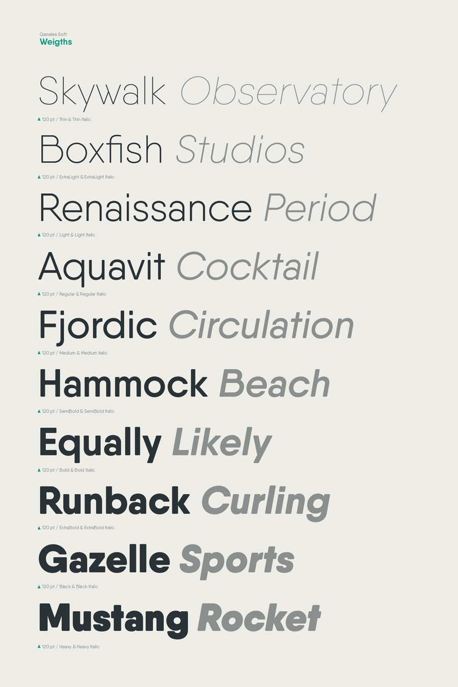 Qanelas Soft是一种具有几何感的现代无衬线字体。原始Qanelas的友好版本字体家族。它有20个重量,10个立柱和相匹配的斜体。