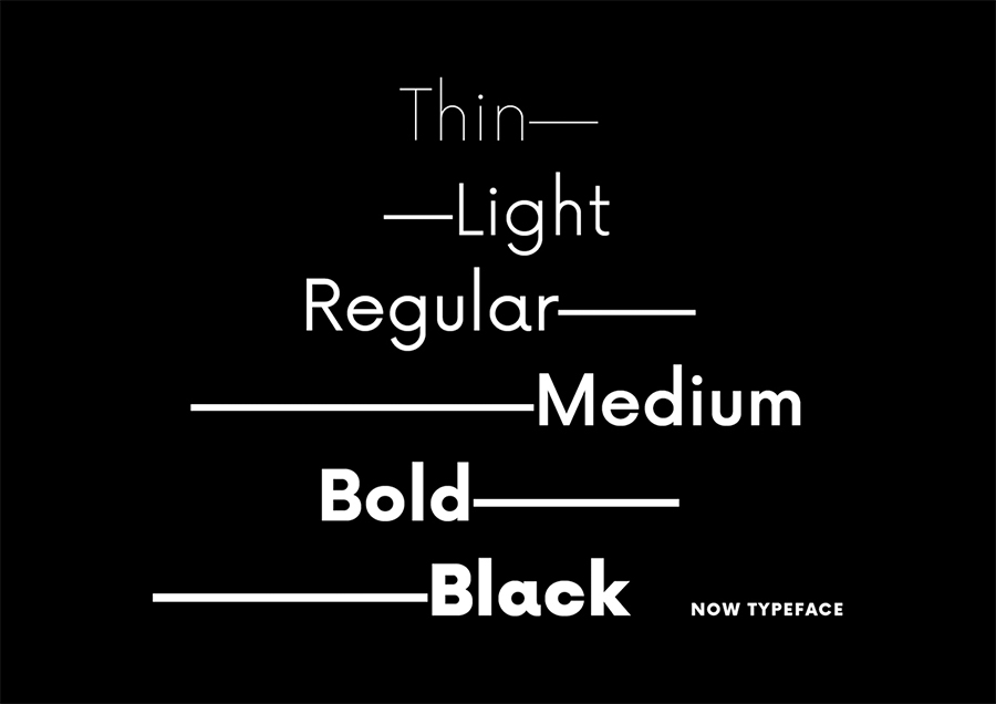 现在字体是一个几何和低对比度的字体。现在字体包含六个样式可以结合在一起给你的设计美好的外观。