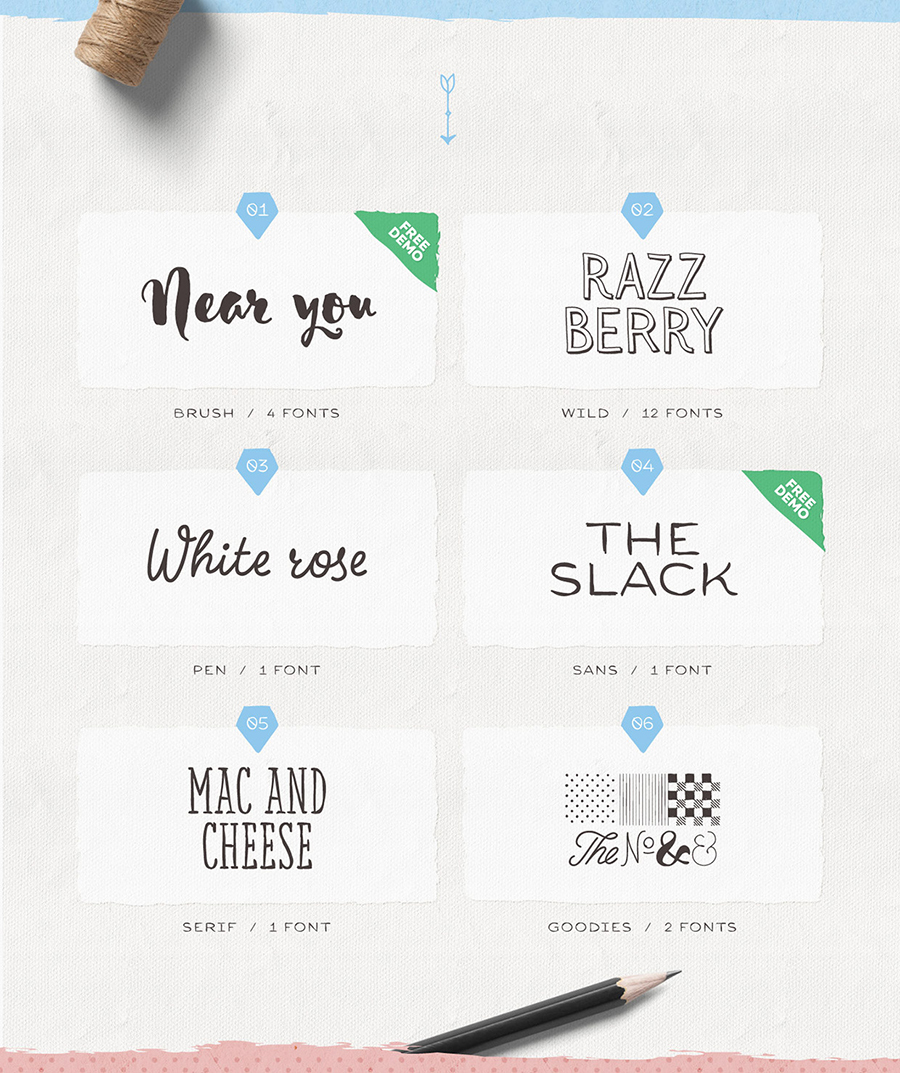 Sensa字体是手工制作的字体家族由21个字体组成。它分为6个亚科,每个贡献其广泛的视觉力量 - Sensa刷,Sensa笔,Sensa Wild,Sensa Sans,Sensa Serif和Sensa Goodies。您可以下载Sensa 字体免费演示,其中包括:Sensa Brush和Sensa Sans。