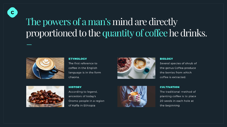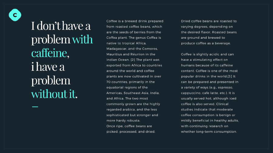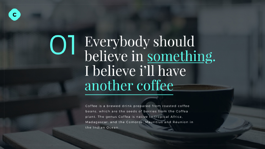 无咖啡主题模板是一个免费的完整和专业的演示模板,你今天可以有。这一套可以在黑暗和光线与83高品质的幻灯片。现在有了这个有用&美丽的主题模板,你可以开始你的演示与现代和时尚的触摸。