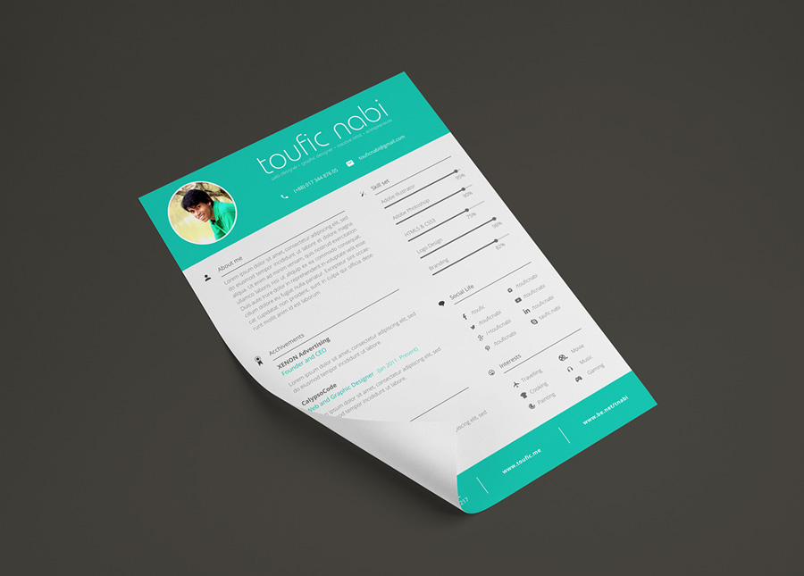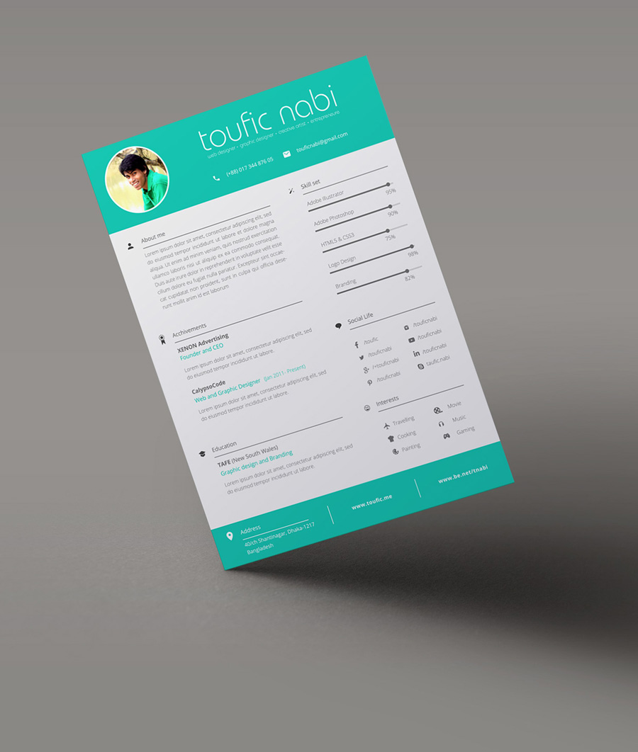 这个平面设计师简历/ CV模板是由所有人免费使用。随意下载这个模板,并与朋友分享,并使用这些PSD文件制作自己的简历。这个简历是用Open sans字体制作的。但是Arial或者helvetica也会做这个工作。包括3种颜色。