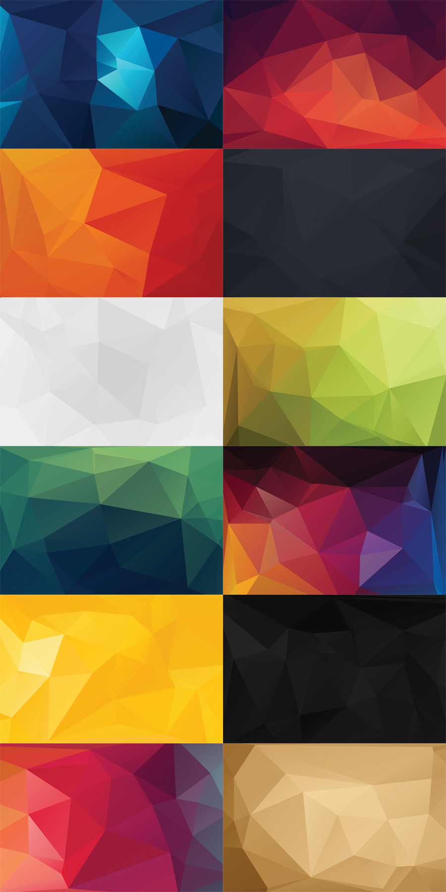 这些美丽的免费的12多边形背景可以用于任何类型的图形设计项目。采用高分辨率12张JPEG格式,分辨率为3000×2000像素,分辨率为300 DPI。