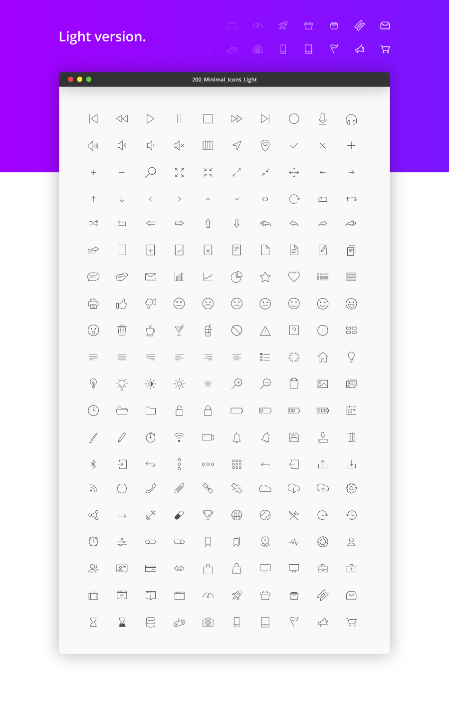 200个最小的矢量UI图标是一个随时可用的集合。这些图标将在设计网站,应用程序,移动设备等方面对您有用。此包由三个不同的版本组成:常规,轻量级和超小型。该文件在EPS和AI(Adobe Illustrator)中可用,您可以轻松地自定义和重新着色。