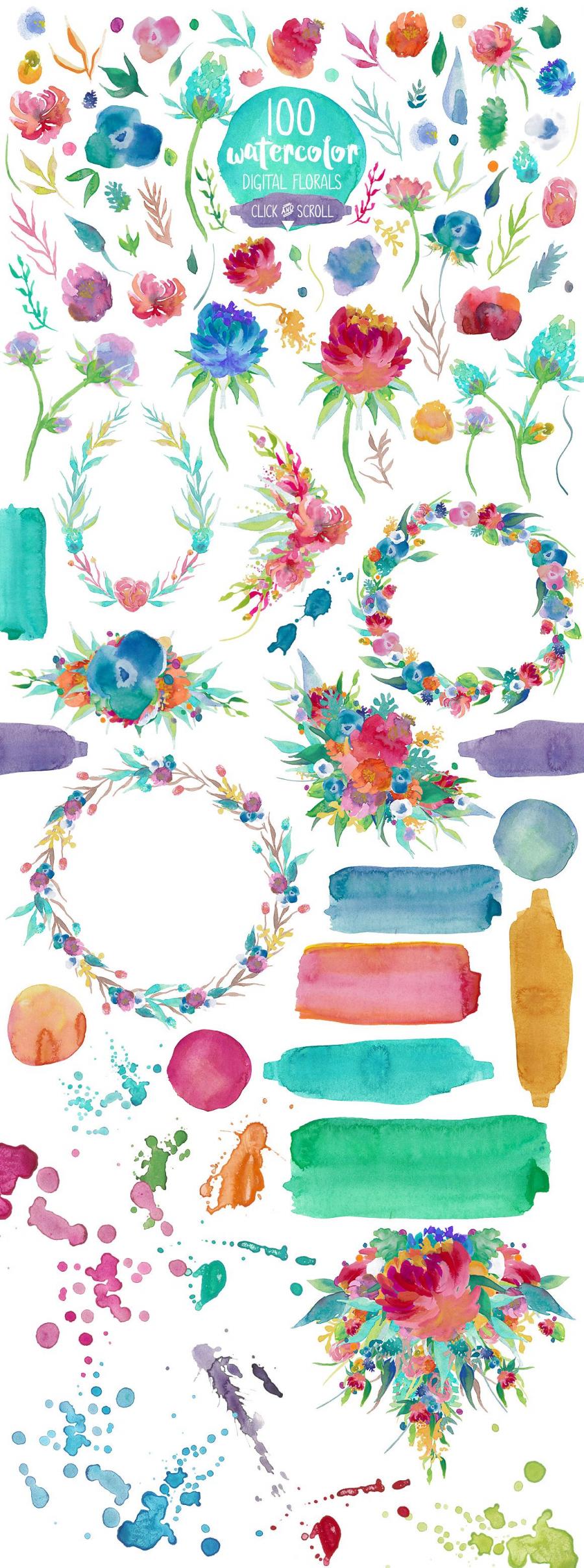 100多个梦幻花香水彩画套装合集PNG免抠素材打包下载