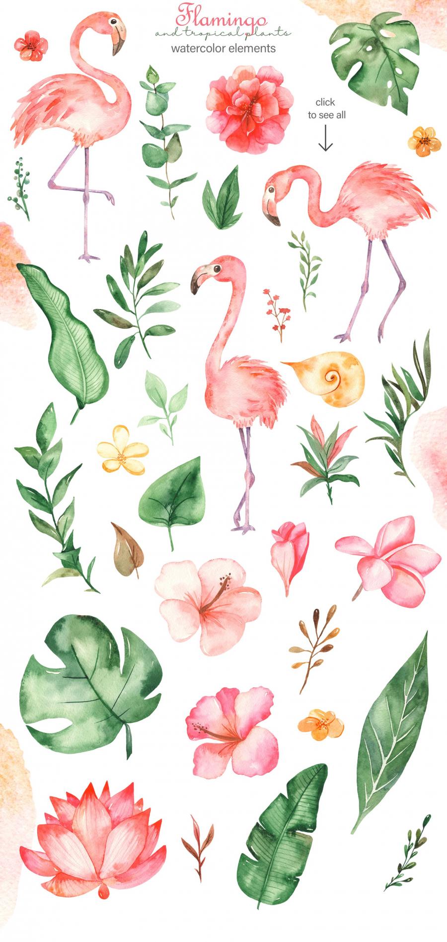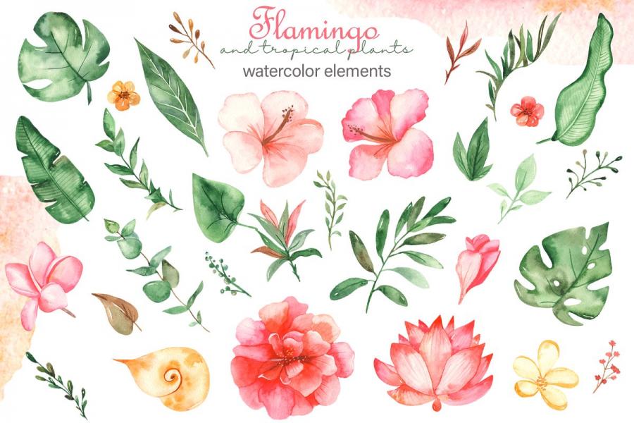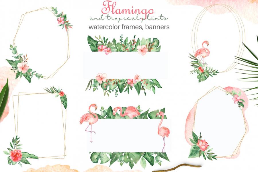 火烈鸟手绘水彩夏日蒙版装饰装饰画芯PNG免抠电子手账设计素材图