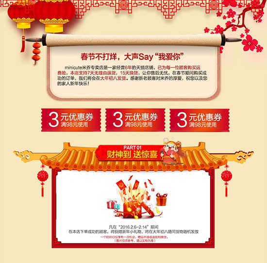 淘宝2016春节放假通知PSD分层素材