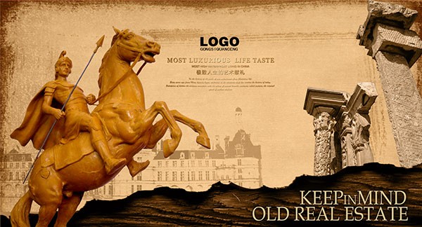 骑士雕塑欧式地产广告psd免费模板