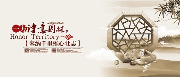 一方诗意园林地产海报psd模板下载