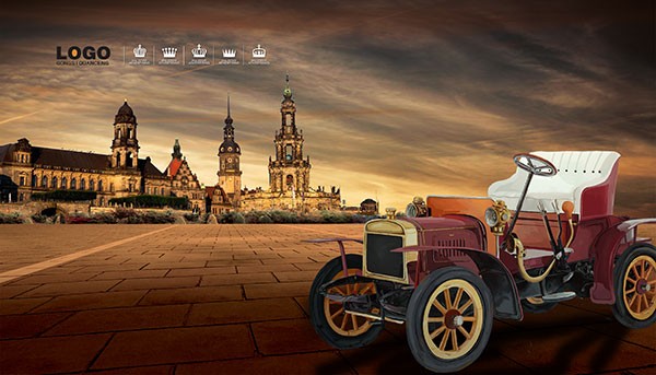 古典老爷车欧式地产海报psd分层模板