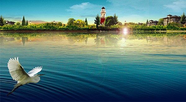 湖畔别墅地产海报PSD素材下载