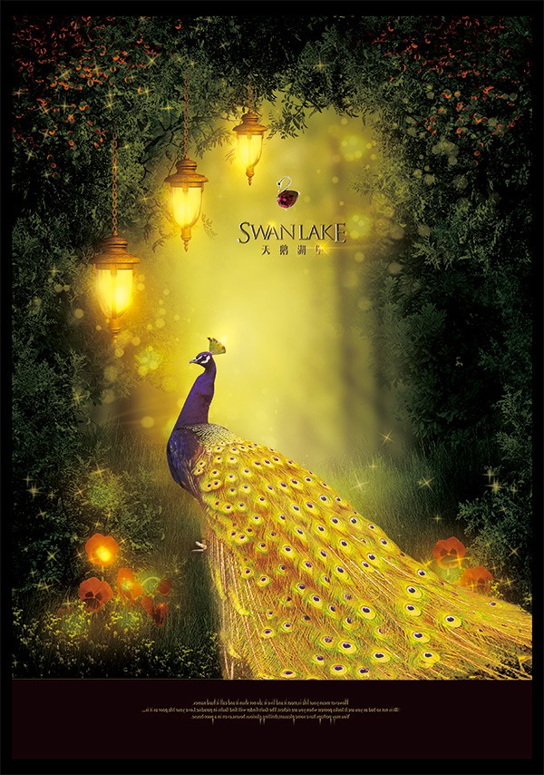 华丽孔雀地产海报PSD免费模板