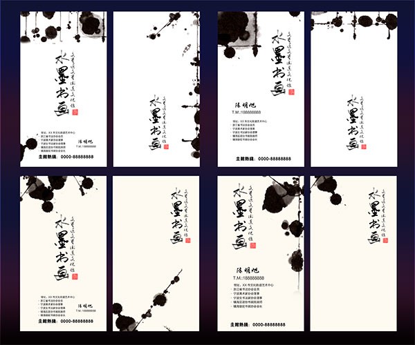 水墨书画名片设计PSD模板下载