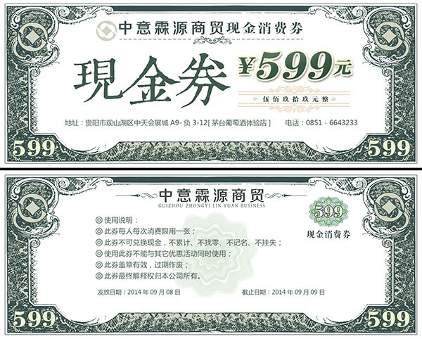 民国风现金消费卷PSD免费下载