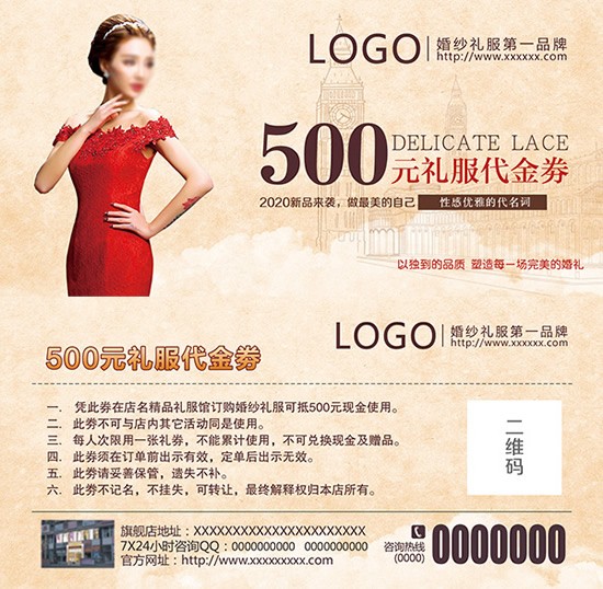 婚纱礼服代金卷PSD素材下载