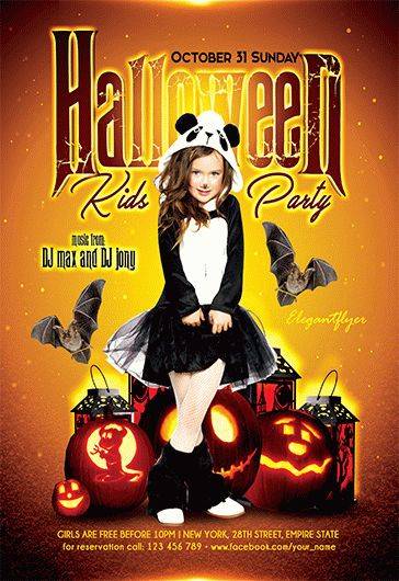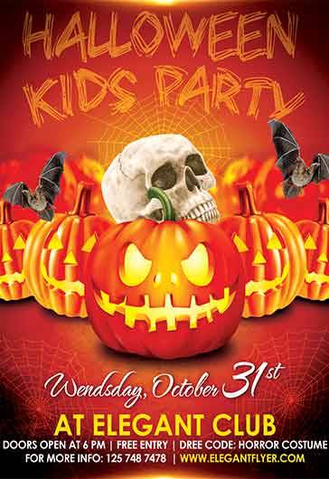 孩子们万圣节派对 - 传单PSD模板+ Facebook封面