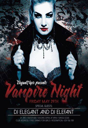 吸血鬼之夜 - 传单PSD模板+ Facebook封面