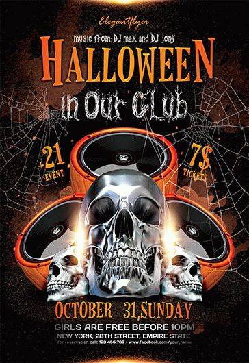 万圣节在我们的俱乐部 - 传单PSD模板+ Facebook封面