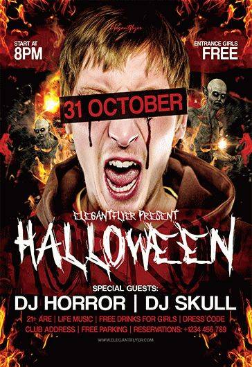 万圣节派对V04 - 传单PSD模板+ Facebook封面