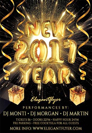 新的一年 - 传单PSD模板+ Facebook封面
