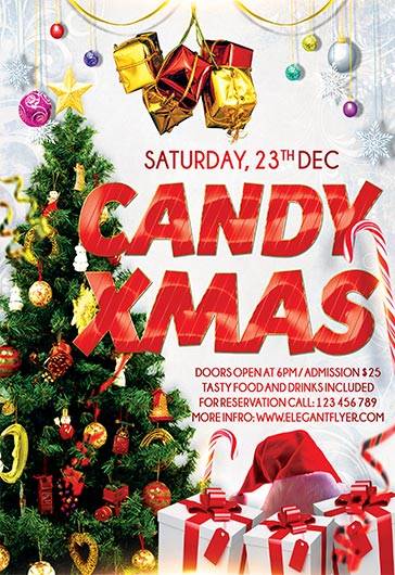 糖果圣诞节 - 传单PSD模板+ Facebook封面
