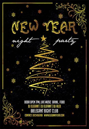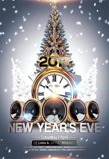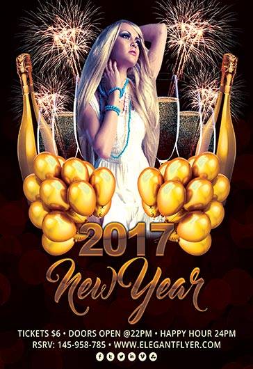 新年除夕派对 - 传单PSD模板+ Facebook封面