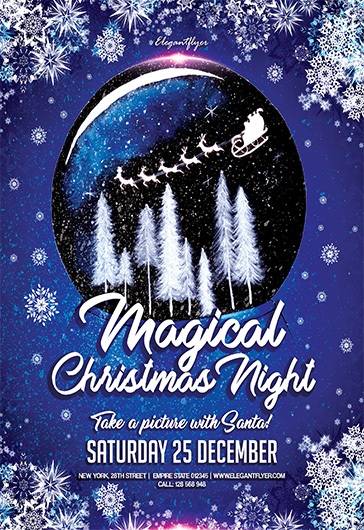 神奇的圣诞之夜 - 传单PSD模板+ Facebook封面