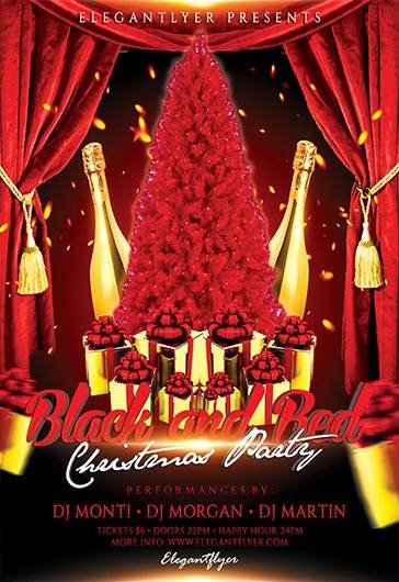 黑色和红色圣诞晚会 - 传单PSD模板+ Facebook封面