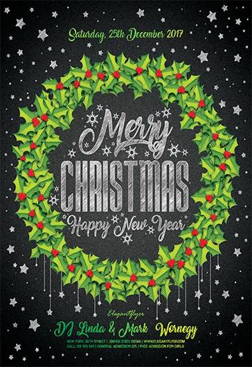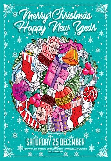 圣诞快乐和新年快乐V02 - 传单PSD模板+ Facebook封面