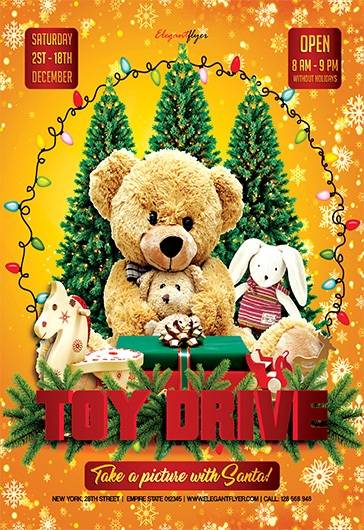 玩具驱动圣诞节 - 传单PSD模板+ Facebook封面