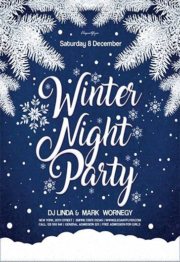 冬季晚会 - 传单PSD模板+ Facebook封面