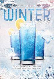 冬季鸡尾酒 - 传单PSD模板+ Facebook封面