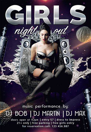 女孩晚上出 - 传单PSD模板+ Facebook封面