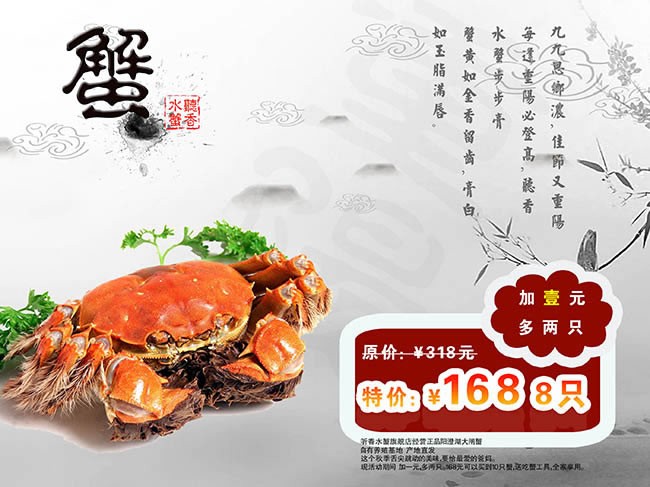 阳澄湖大闸蟹促销海报PSD免费下载