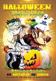 万圣节 - 儿童派对 - 传单PSD模板+ Facebook封面