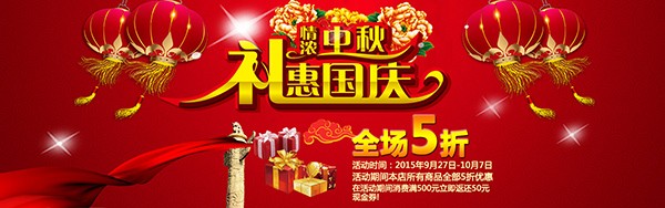 淘宝店铺中秋国庆促销PSD横幅设计