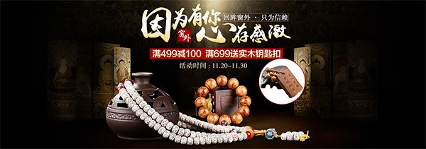 淘宝佛珠感恩回馈促销海报PSD免费素材