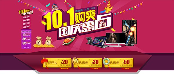 数码网店10.1购爽国庆惠活动PSD海报设计