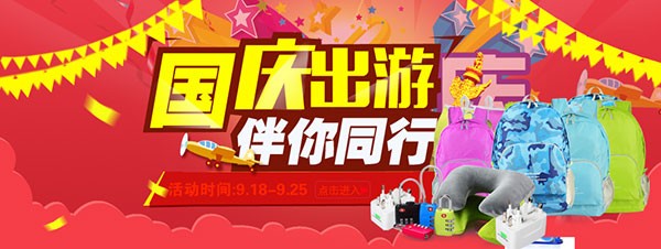 淘宝国庆节旅游用品店铺活动PSD横幅模板