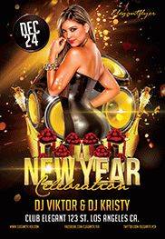 新年庆祝活动 - 传单PSD模板+ Facebook的封面