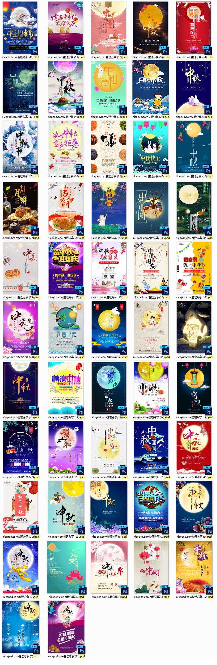 52款中秋节海报模板、月饼促销活动、宣传单背景PSD源文件打包下载